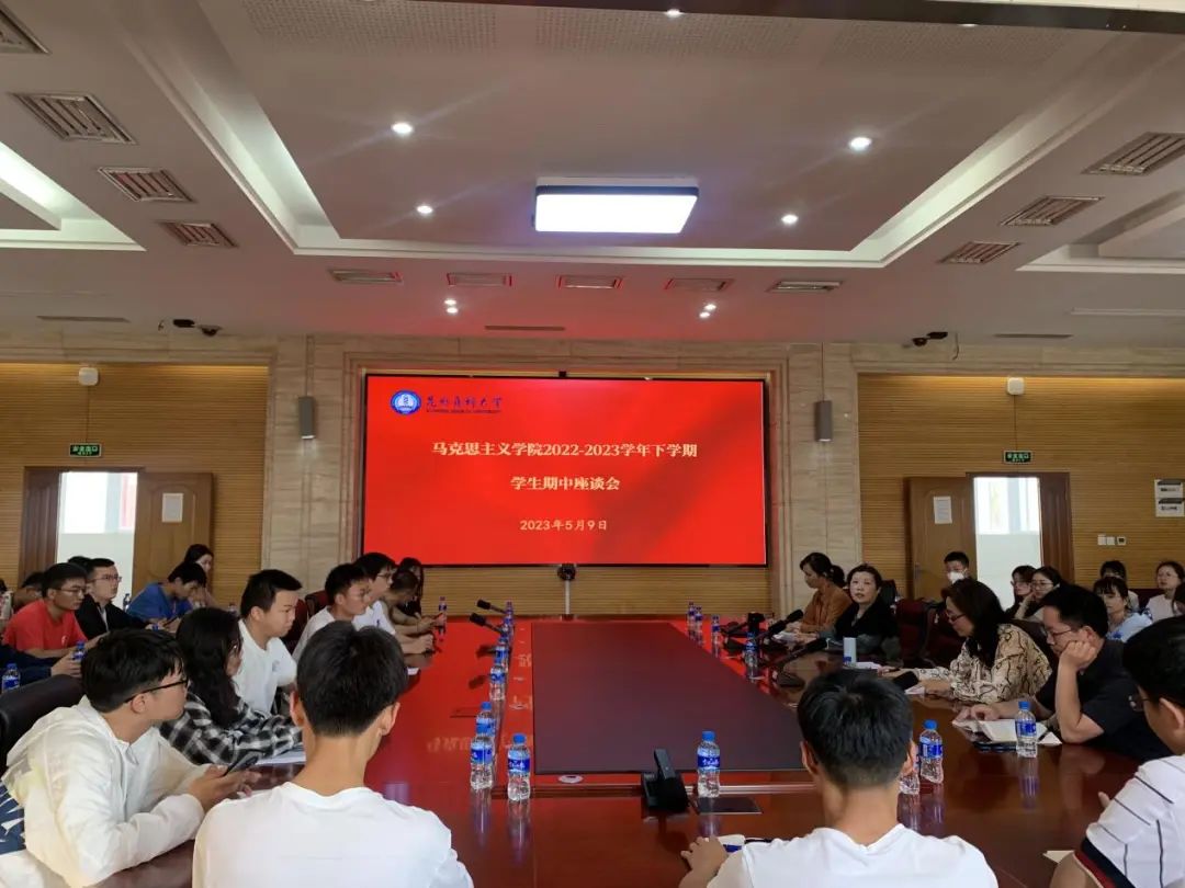 2023年5月9日下午,马克思主义学院在学术交流中心302会议室召开 2022 — 2023 学年下学期学生期中座谈会。座谈会由学院副院长刘翠英主持,教学办老师、学院教师代表及2021—2022级学生代表共计70余人参加了会议。