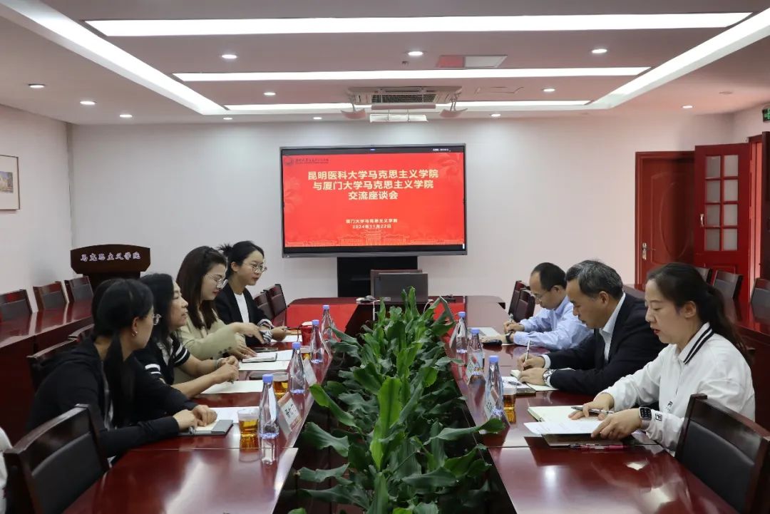 2024年11月21日至23日,我院“毛泽东思想和中国特色社会主义理论体系概论”教研室邵庆龄老师一行4人赴厦门大学马克思主义学院开展学习交流活动。与厦门大学马克思主义学院中国化教研部主任蒋昭阳教授、副主任王亚群副教授、教师晏振宇副教授就提高课程教学质量、完善集体备课制度和教学改革创新开展了深入的学习和交流。