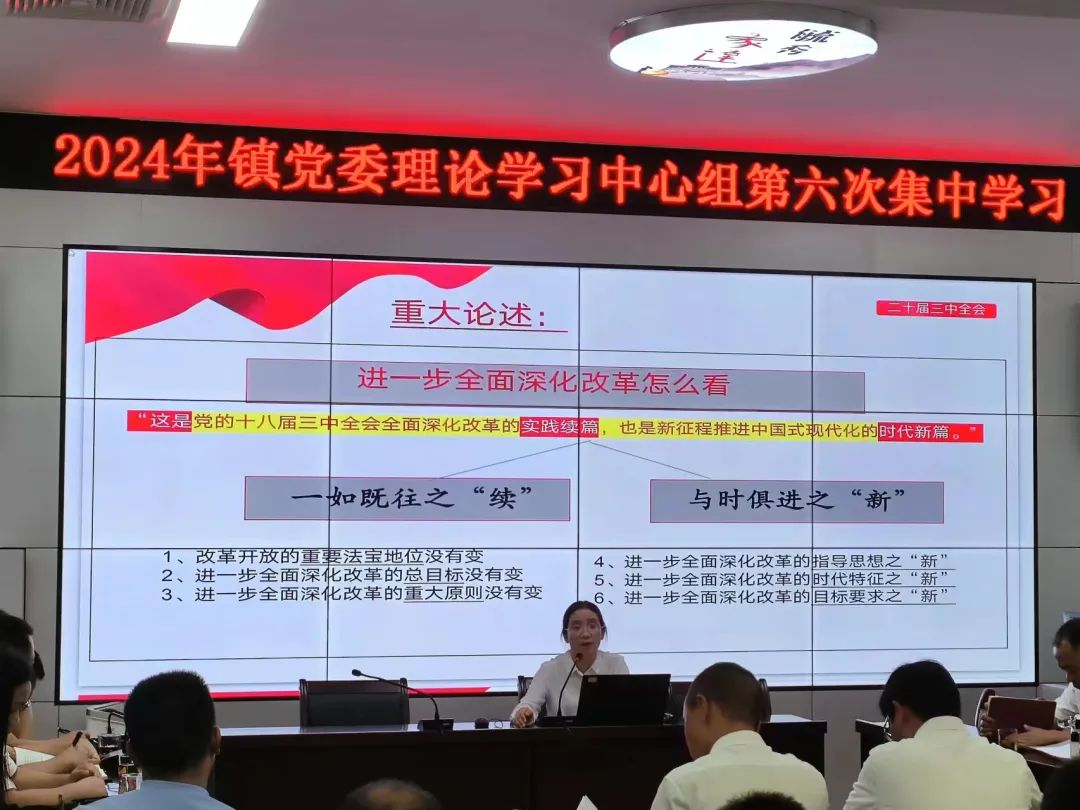 2024年9月9日上午,马克思主义学院驻村工作队队员李贵梅老师为象达镇党委理论学习中心组的35名党员干部宣讲党的二十届三中全会精神。