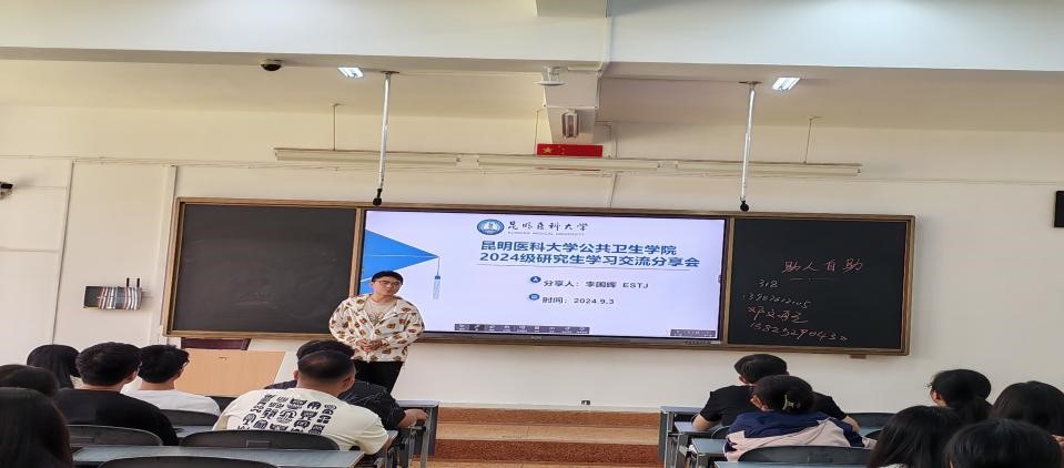 9月3日,公共卫生学院 “一站式”学生社区协同育人中心在教学楼6103顺利举行研究生新生“开学第一课”暨入学教育。本次“开学第一课”暨入学教育内容包括校纪校规和安全教育、新老生经验交流及院研究生会招新宣讲三个环节。学院学办主任邓文航、学科科研与研究生管理办副主任柏桦、2023级博士研究生李国晖、2022级硕士研究生李小菊、张亚访、研究生会干部成员以及全体2024级研究生新生到场参加活动。