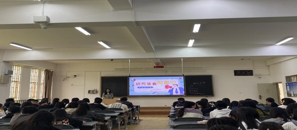 新老生经验交流环节结束后,我院研究生会干部成员向在场的新生们进行了研究生会宣传介绍,并积极动员广大新生参与。各位研究生会干部成员详细介绍了研究生会工作概况及各部门架构,在场的同学生根据自身兴趣与意愿踊跃地进行了报名。